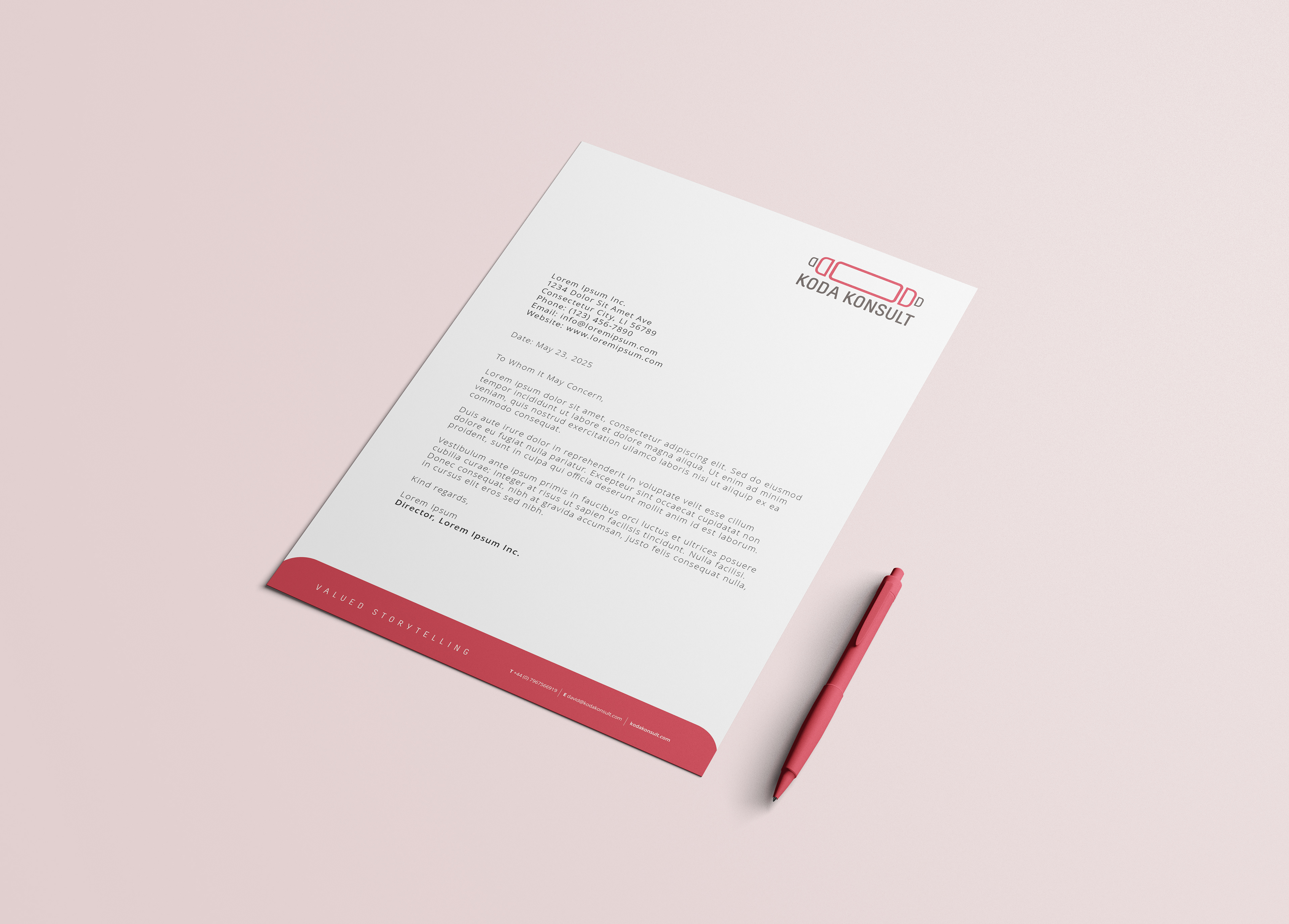 The design draws inspiration from the founder’s love of Japan, reflected in its minimalism, sense of space, and quiet precision. The colour palette — primarily white and deep red — nods to the Japanese flag, reinforcing the brand’s themes of clarity and purpose. This influence aligns with Koda Konsult’s thoughtful, investor-led approach and their emphasis on strategic narrative and curiosity. The overall identity balances confidence and calm, aimed at attracting forward-thinking clients, investors, and top-tier talent.